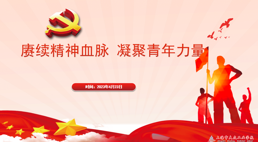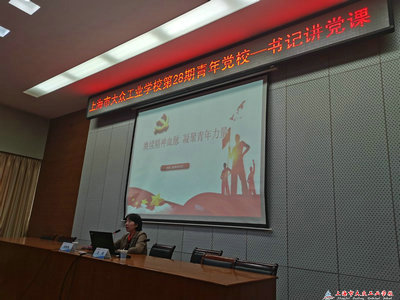 2023年4月23日中午12点20分,上海市大众工业学校第二十八期青年党校课程:书记讲党课在阶梯教室召开,校党总支副书记杨建英、校团委书记王顺以及校二十八期青年党校学员参加学习。