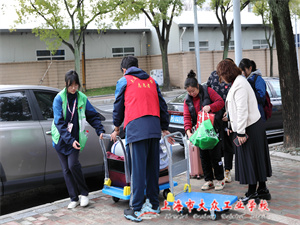整个上午,冒着不时的小雨,学生条线的老师始终在学校门口,指挥交通,协助搬运行李物品,身穿红色和绿色马甲的小小志愿者们则是不辞辛劳,一遍遍帮助行李物品较多的住宿生搬运行李,虽然来来回回比较辛苦,但是我们的志愿者没有怨言,始终精神饱满,做出了“小大人”的形象,志愿者还时不时遇到本班同学,大家热情招呼,在一片忙碌而又祥和的气氛中完成了上午的工作。