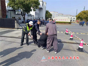 根据公安部门于近期开展一次防个人极端事件应急演练要求,2024年3月7日下午,上海市大众工业学校按照应急预案,开展了一次防个人极端事件应急演练。本次演练中,学校联系了菊园派出所民警周君、嘉宏居委安全干部沈强等人到校参与演练指导,学校副校长沈菊芳,安保处主任严惠龙、副主任陈琼毅现场参与指挥,现代制造系副主任郏豪杰、王文强老师以及部分学生代表参与了模拟演练活动。