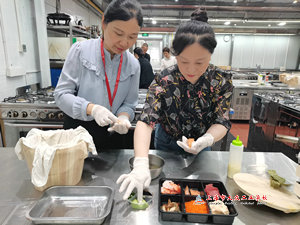 根据校工会的安排,5月31日,第一、八工会教职工齐聚烹饪实训中心开展寿司DIY活动,在烹饪专业教师王峰的指导下,学习海鲜寿司制作。