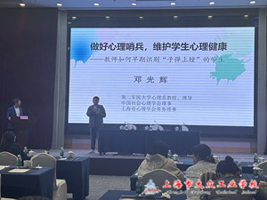 在学生心理健康教育方面,第二军医大学心理系教授、博士研究生导师邓光辉带来了题为“教师如何做好心理哨兵,维护学生心理健康”的专题讲座。邓教授结合丰富的实践经验和心理教育案例,为参会人员提供了宝贵的心理健康教育和辅导方法。