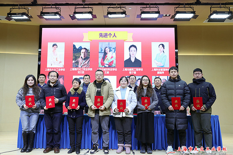 赵晓伟宣读“上海职教在线”2024年度信息工作先进单位和先进个人获奖名单。大众工业学校获评2024年度上海职教在线信息工作模范奖,蔡玉珍被评为本年度信息工作先进个人。周晓健、蔡玉珍分别上台接受相关奖项。