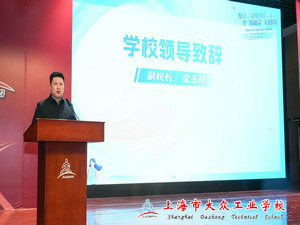 启动会在庄严而热烈的氛围中开启。上海市大众工业学校副校长金玉林率先致辞,擘画大赛愿景。他强调职业教育肩负着为产业转型升级输送高素质技术技能人才的重任。倡导学生以专业为基,践行创新热情、工匠精神、团队协作,打造技术与社会价值并重的项目。学校将持续赋能,推动职教创新服务产业升级,共擎新质未来。