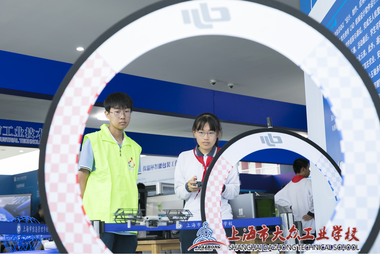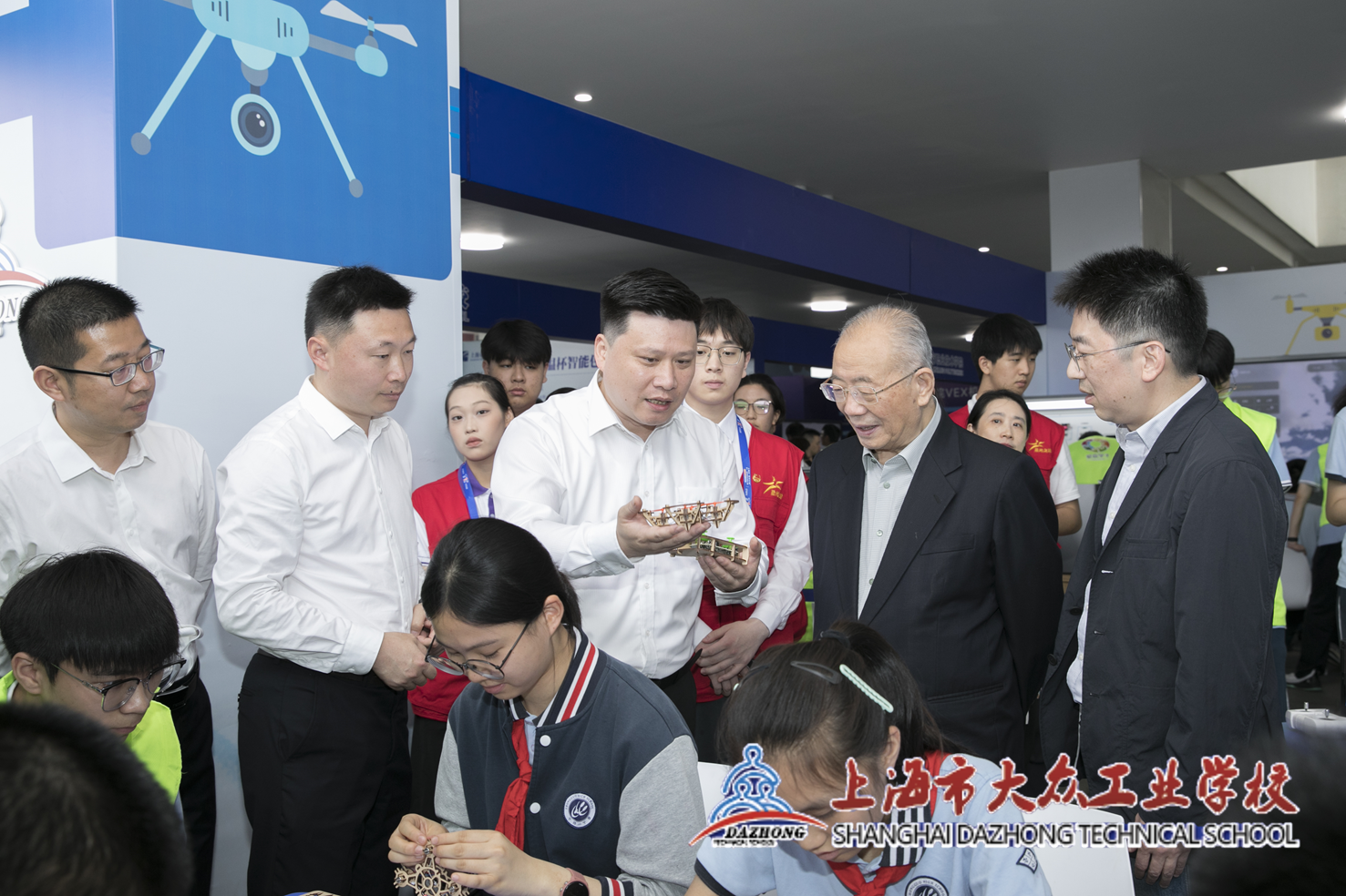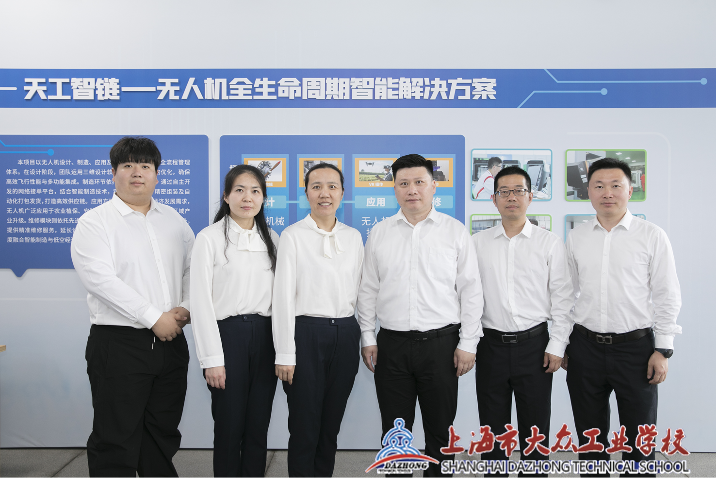 启动仪式上,我市六所中高职学校代表一展风采,上海市大众工业学校有幸成为其中之一。展示活动赢得了市教育发展基金会理事长王荣华的高度赞扬。他对我校在职业教育领域取得的成果表示肯定,并期望我们能继续为社会输送更多高技能人才,为推动职业教育发展和产业升级贡献更多力量。在金玉林副校长的带领下,前期由实训中心牵头,现代制造系全力配合,精心搭建展示场地,反复演练。此次展示以低空经济下无人机的全生命周期为背景,巧妙融合我校CAD机械设计、数控加工、无人机操控和原型制作等优势项目。现场,学生们从无人机的设计构思入手,在数控加工环节精准制造零部件,随后利用无人机操控技术进行模拟飞行操作,最后通过原型制作完成整机组装。