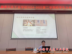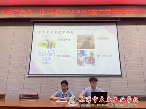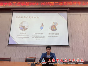 2025年5月19日中午,上海市大众工业学校第六届四次学代会后首次学生会大会在校4号楼阶梯教室顺利召开。学生会主席林宇涛、副主席张庆轩及5位部门部长向全体学生会成员展示各部门职责与工作规划。校团委书记王顺老师、校团委谭珍珍老师出席本次会议。