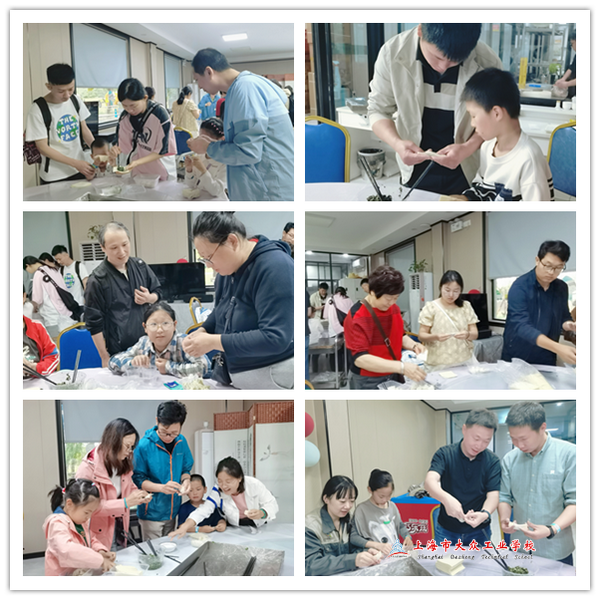 午餐后,是美食DIY,亲子共包荠菜肉馄饨。现场,家长们分组坐在桌旁,耐心指导孩子包馅:把馄饨皮铺好,挑馅、蘸水、合拢、按压……看着自己的“作品”,孩子们脸上洋溢着自豪的笑容。各组包制馄饨的造型各异,不少家长包出的元宝馄饨造型别致,一下吸引其余家长和孩子过来请教步骤和细节。活动结束,每个孩子都收获一盒亲子共包的手作馄饨,带回家与家人分享这份劳动成果。