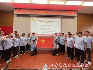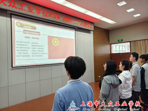 在仪式的最后全体人员面对团旗奏唱《团歌》,激昂的旋律再次点燃了全体团员的热情。至此,上海市大众工业学校2024-2025(二)新团员入团仪式圆满结束。