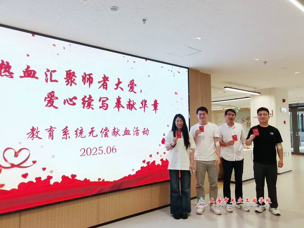 6月20日上午,在校工会副主席姚光的带领下,上海市大众工业学校李继先、徐安冉、谢俊周、马振元等4位教师在嘉定区血站成功完成献血,新增一本鲜红的无偿献血证,以热血为笔,书写师者的责任与担当。
