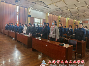 在仪式的最后,全体人员面对团旗,奏唱《团歌》,激昂的旋律再次点燃了全体团员的热情。至此,上海市大众工业学校2025-2026(一)新团员入团仪式圆满结束。