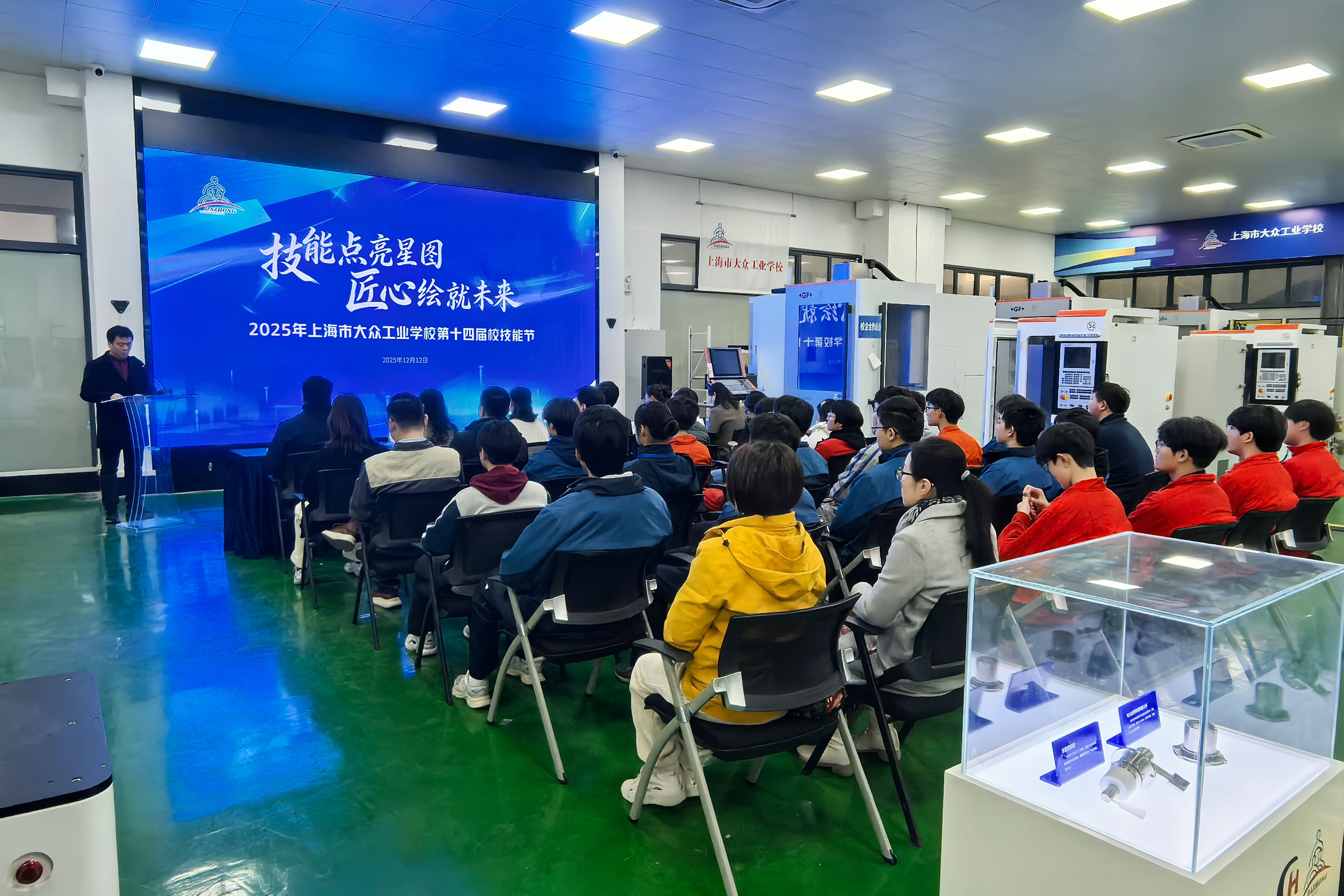 12月12日,上海市大众工业学校第十四届校技能节开幕式在学校智能制造中心隆重举行。本次活动以“技能点亮星图,匠心绘就未来”为主题,聚焦职业技能提升与工匠精神培育,既是学校职教成果的集中展示,也为校际交流、师生切磋搭建了优质平台。上海市宝山职业技术学校、曲靖市会泽职业技术学校、罗平县职业技术学校等一行十六人来校参观交流,为技能节注入了浓厚的校际交流活力。