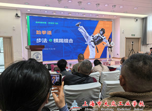 随后进入教学展示(说课)环节。上海市现代职业技术学校教师火玲以“舞蹈啦啦操自编组合三及阿拉C杠转技术”为题进行说课,声情并茂、动与思相结合,将教学流程生动呈现;上海市工商外国语学校教师曹志军带来“跆拳道—步法+横踢组合”为题的说课,着重展示了动作要领与多样化教学手段。两场展示均以严谨的教学设计与信息化教学方法获得现场一致认可。说课展示结束后,上海市长宁区教师教育学院体育教研员马雪明从教学目标达成、教学方法创新、重难点突破等维度,对两场说课进行了细致剖析,肯定了两位教师在课程设计中对技术动作教学的细节处理、教学评价的多元化实施,为参会教师优化课堂教学提供了明确指引。