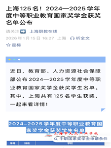 近日,2024-2025学年度中等职业教育国家奖学金获奖名单揭晓,上海市大众工业学校成语、金凯茜、金宇帆、龚靖恩四位同学凭借优异表现成功入选。本次获奖人数达4人,实现了学校的历史性突破,充分彰显了学校立德树人的育人成果与学生卓越的综合素养。