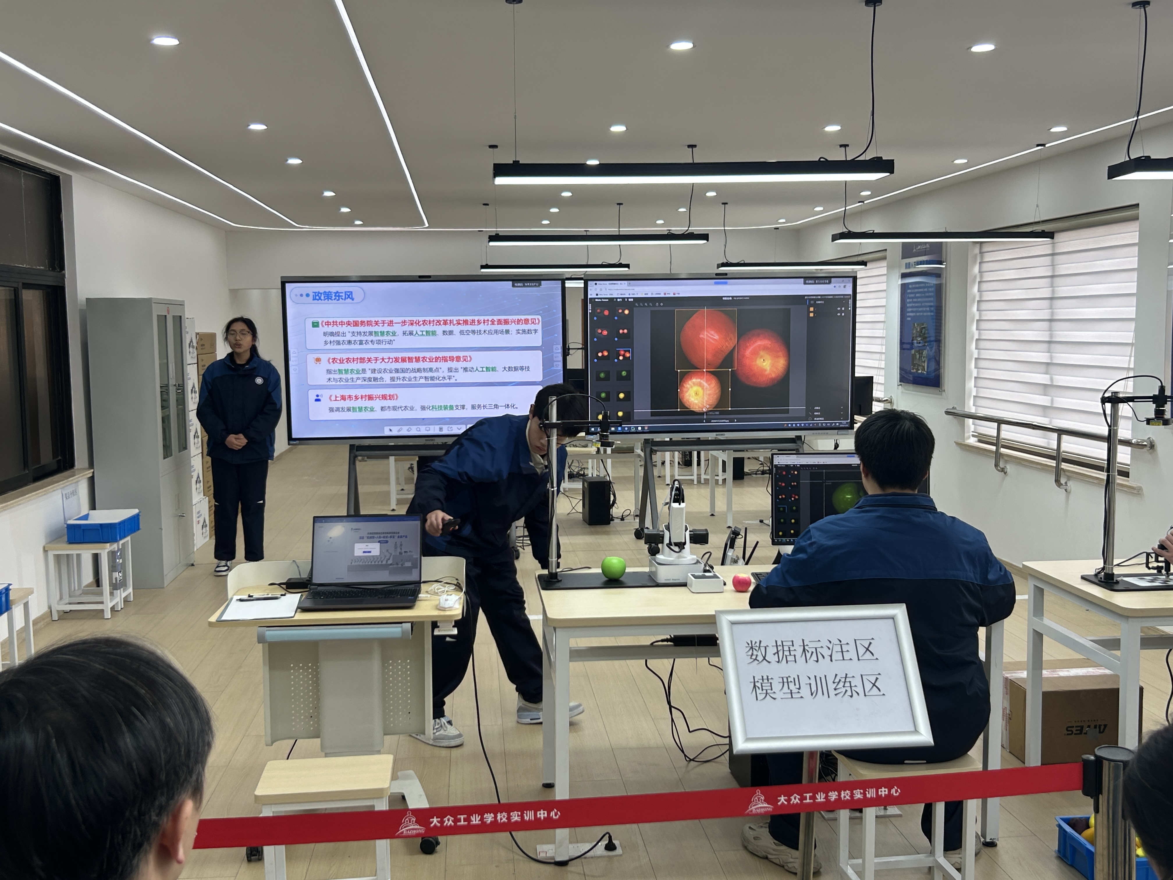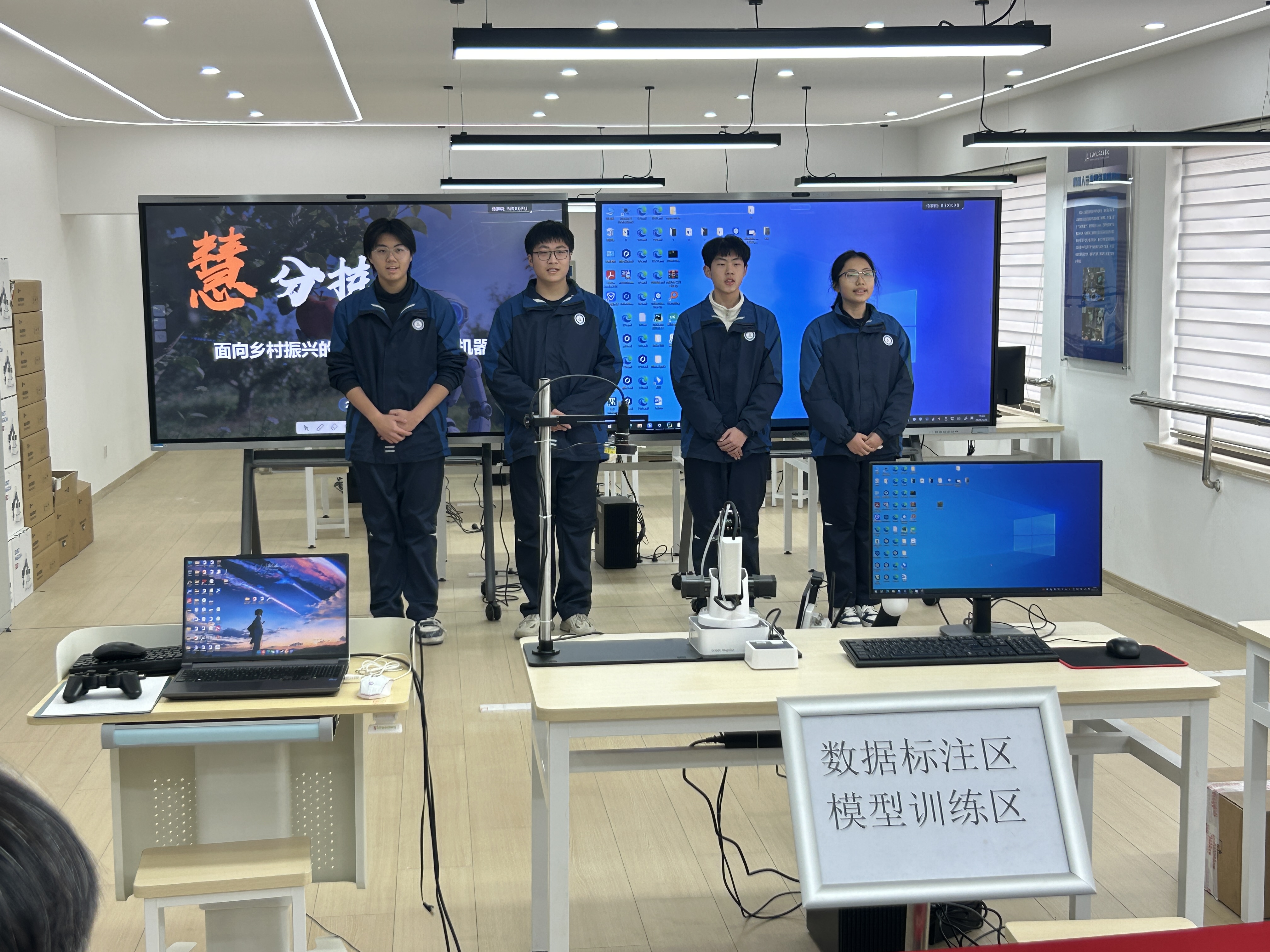 智能工程系的“慧分拣--面向乡村振兴的AI视觉果品分级机器人”项目,紧扣乡村振兴战略需求,聚焦农业分拣痛点。该项目依托机器视觉技术,可精准识别农业果品中的坏果、不成熟果,实现自动化智能分拣,有效解决传统人工分拣效率低、分级标准主观、易造成果实损伤等问题,助力农业规模化、标准化发展,彰显了人工智能技术赋能乡村振兴的实践价值,其技术原理与当前食品水果智能分拣机器人的核心技术高度契合,展现出较强的场景适配性与实用性。