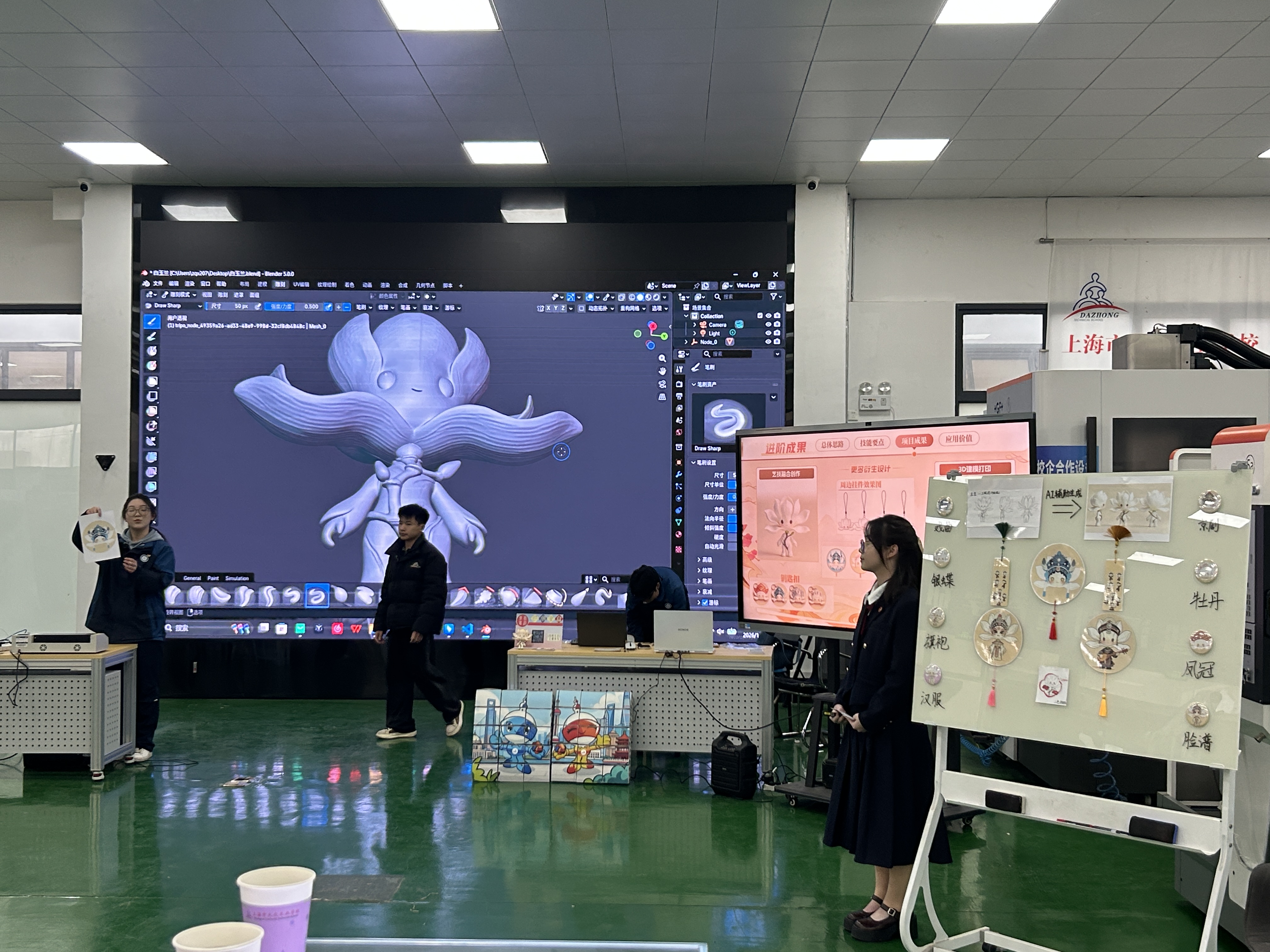 信息工程系的“艺智新生”项目,打破技术与文化的壁垒,探索AI在文化创意领域的创新应用。该项目通过AI深度学习技术,实现AI绘画、线稿辅助生成三维模型、二维漫画形象等功能,重点打造地方特色IP形象并探索推广路径,将技术创新与文化传播相结合,既展现了AI技术的多元应用场景,也为地方文化的年轻化、数字化传播提供了新思路。