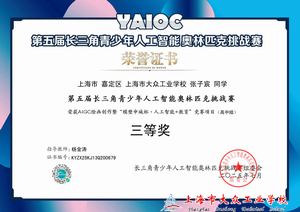 近日,第五届长三角青少年人工智能奥林匹克挑战赛暨“模塑申城杯・人工智能+教育”竞赛AIGC绘画创作项目落下帷幕。上海市大众工业学校彭凯文、谢上斌、吉轩、张鑫宇、张子宸、金晓晨六名学生凭借扎实的技术应用能力与丰富的创意构思,从长三角地区众多参赛选手脱颖而出,均荣获三等奖,为学校赢得了荣誉。这份成绩的背后,是师生数月来同心协力、攻坚克难的不懈坚守,更凝聚着备赛过程中的每一份思考与成长。