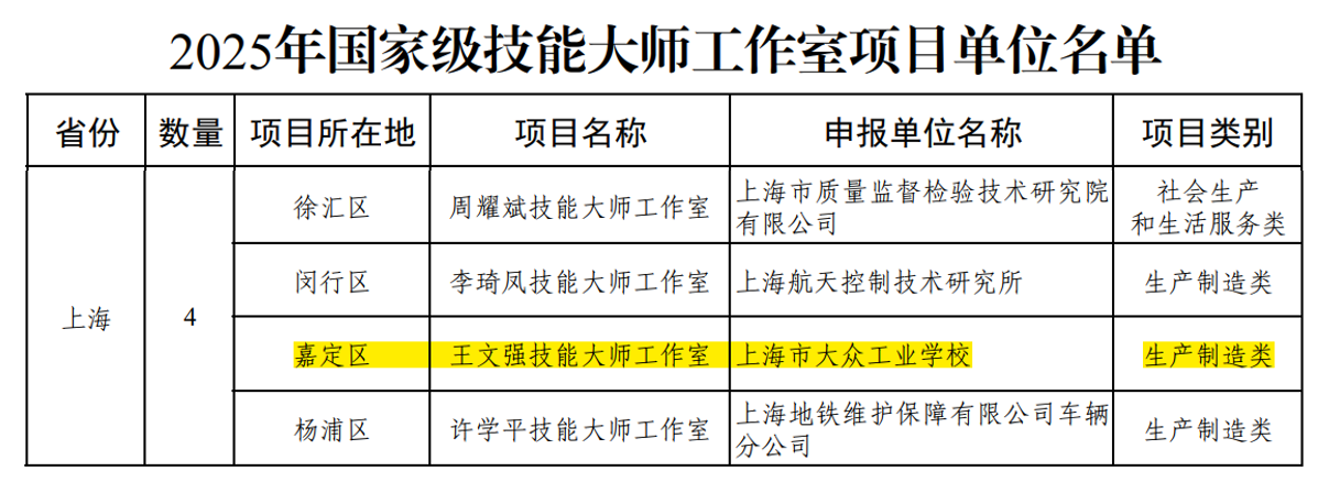 作为申报单位,上海市大众工业学校始终高度重视高技能人才培养工作,积极搭建技能传承与创新平台,助力教师成长成才。此次王文强技能大师工作室获批国家级项目,将按照通知要求,依托学校优质资源,严格落实项目建设要求,聚焦生产制造领域技能人才培养、技能攻关、交流协作等核心任务,发挥示范引领作用。