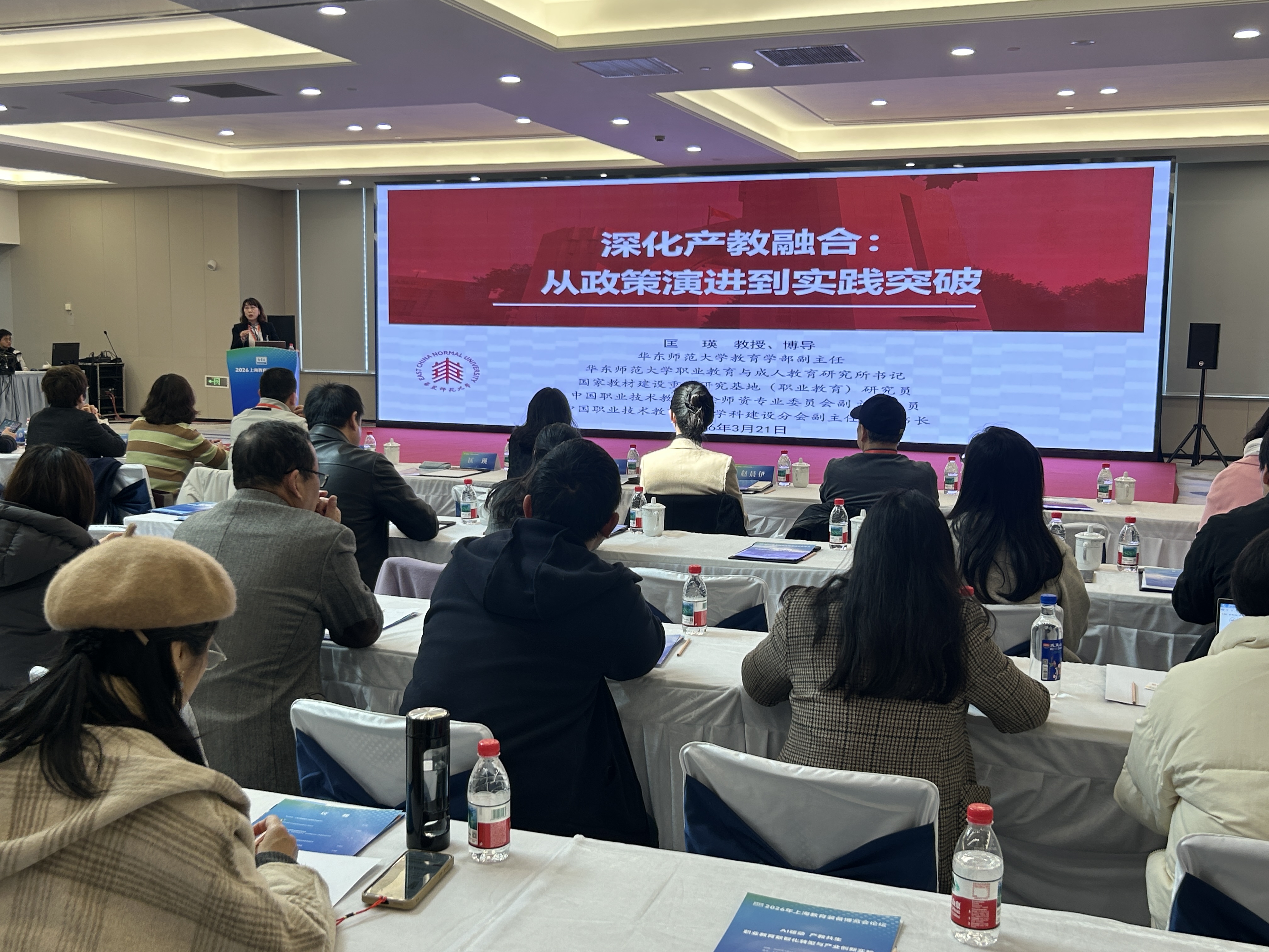 2026年3月21日上午,2026年上海教育装备博览会“AI驱动·产教共生——职业教育数智化转型与产业创新实践”专题论坛在上海汽车会展中心六楼星空厅成功举办。上海市大众工业学校校长付磊带领各系部主任、教研组长及学科带头人齐聚现场,共赴这场职业教育数智化发展的思想盛宴,深入学习职业教育与人工智能融合发展的前沿理念和实践经验。