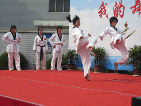 回眸本场演出,仅五个班且以女生居多的教学部共上演了形式多样、风格各异的十个节目,实属不易。其中男女声独唱、二重唱、小组唱,歌喉动人,回荡校园,吸引了它班学生驻足观看;更有充满活力、激情四射的舞蹈引来台下观众的一片欢呼叫好声;最令人啧啧称奇的便是0521班的跆拳道表演,伴着周杰伦动感十足的《霍元甲》,平时看上去温文尔雅的几个女孩在台上跳跃腾挪、飞腿连连,姿态潇洒帅气,展现了综合文科教学部学生的别样风采……