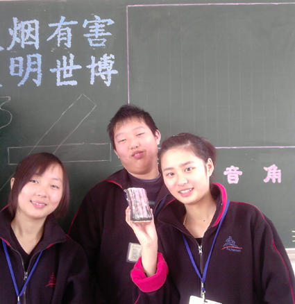 在学生志愿者们热情细心地帮助下,两个原本互不相识的群体却通过这么一块黑板建立起了深深的友谊,初职班的学生也都向志愿者们表示了谢意,被她们的行为而感动。