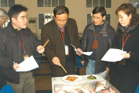 比赛于上午9:00至下午1:00进行,按照事先进行的抽签,整个过程中同学们都有条不紊地谨慎操练,给比赛增添了一份紧张气氛,到中午12:00,差不多所有的比赛菜肴、冷盘都已制作完毕。