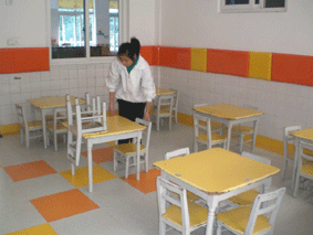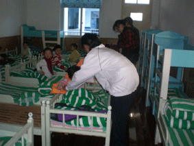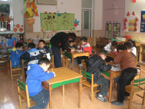 全班46名学生被分别安排在3个幼儿园,周一在3位老师的带领下,准时将学生送到了她们各自见习的幼儿园。幼儿园的领导也很是重视,举行了欢迎仪式,在简短而容重的拜师结对仪式之后,同学们随即就进入角色。第一天,同学们大都跟随在保育员老师的后面,主要熟悉保育员日常要干的一些事情,对保育员的工作内容和要求有基本的了解。一天下来,同学们都感到腰酸背疼,但那股对工作的热情却丝毫没有减少。第二天,她们开始了简单的尝试,拖地、擦桌子,照顾宝宝吃饭、睡觉、穿衣。虽然动作还是有点生疏,但是她们能积极主动的