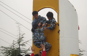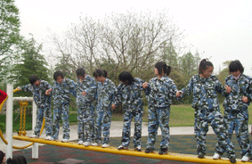 踏上绿舟,走进国防。在东方绿舟,紧张而又充实的三天生活既增长了同学们的视野,又培养了同学们顽强的意志。拓展训练,训练同学们团结互助、永不言败的精神;寻宝活动,训练同学们团队合作、野外辨别方向的能力;野外搭帐篷的活动,锻炼同学们动手动脑、手脑协作的能力;军事活动,让同学们更加深入的了解枪械构造、战地救护等方面的知识。在这几天里,有很多场景都令人难忘和感动。例如,在拓展训练中,我们看到了,为了完成任务,大家齐心协力,团结合作,尽自己最大的全力为班级争光;在战地救护训练中,通过教官幽默、认真的讲解,同学们在欢声笑语中学到了很多简单的救护的知识。特别是入营的第二天,天公不作美,开始下雨,但同学们不顾全身湿透,依然在雨中训练,依然冒雨行军,没有一个人掉队,确实让人感动。虽然我们文科部大部分是女生,但是巾帼不让须眉,一点不输给男生,没有一个人喊苦喊累,掉队的。