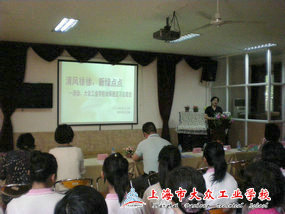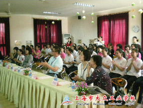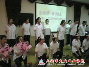 5月24日上午,清河路幼儿园举行了一场别开生面的实习交流总结会,教育局领导、两校的领导都参加了此次活动。嘉宾们首先观看了心灵手巧的保育员和同学制作的手工艺品,连连称赞保育员队伍不简单。接着朱芳副局长作了了热情洋溢的讲话,她激励学生要认真跟着师傅学技能、跟着老师学知识,成为一支年轻有实力的力量充实到嘉定的幼儿保教队伍中。吴晓岚也代表同学发了言,两周的实习,通过师傅的耐心指导,大家学会了很多实践操作,技能都有了很大的提高。吴晓岚同学的师傅是一名优秀的高级保育员,她向同学们讲述了工作中的体会,保育员不但要有娴熟的操作技能,更要具备“四心”即爱心、细心、耐心和责任心,使同学们深受启发。最后一个环节是才艺展示,保育员们活泼生动地表演了幼儿体操,轻松而明朗的节奏令台下的嘉宾一起打着节拍,掀起了一个小小的高潮。我们的学生也不甘示弱,急诊救助技能演示、儿歌联唱,都博得了满堂彩。不知不觉,内容丰富、形式活泼的实习总结会临近尾声……