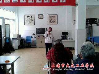 3月8日中午12点10分,文科教学部的学生会干部,组成了“学雷锋”小组,一起前往嘉定区社会福利院看望老人,传递爱心。本周是学雷锋周又逢三八妇女节,同学们向老人送去了节日的祝福并和她们聊天交谈,画面显得十分温馨。