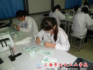 半个小时之后,同学们拿着翻打的机器和传票向着实训室走去,一路上还在检查着自己的电池还有备用电池。很快同学们做到的自己的位置上开始整理桌上的新钞和自己磨合一下手感,比赛很快开始了,首先开始的是单指点钞,一声令下,整间实训室里都听到潜在同学们的手里沙沙作响,不一会一捆就点完了,紧接着拿下一把钞票,动作迅速麻利,在这次技能节中显现出了同学们平时练习的成果,也让自己看到了相比去年技能节的进步。时间到了之后,分派给每组的验钞的同学们也迅速的跑到点钞机前为同学们验钞,登记成绩。