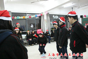 晚会六点半准时开始,主持人首先邀请出扮相可爱的“圣诞老人”,由他为同学们介绍了“圣诞”的来历,紧接着各班代表纷纷上台唱响了一些与圣诞相关的英文歌曲。为了使气氛更加活跃,经济管理系副主任陈亮老师还专门上台调动大家的积极性,鼓励大家多多参与,只要上台表演的同学都将获得“圣诞老人”当场分发的小礼物。接下来便是各种有趣的英语游戏环节:顶气球、英语单词接龙、猜单词、专业知识问答等等。特别是英语单词接龙,主持人邀请六位学生上台,一位学生说出单词,下一位学生需以这个单词的最后一个字母为开头说另一个单词,以此类推,期间不得重复。猜单词环节考验了同学们的临时应变能力,一人拿到单词另一人需根据他的动作来猜测,这些有趣的英语游戏都很好地锻炼了同学们的口语与单词积累能力。