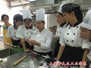 9月13日上午十点,嘉宏社区与嘉邦社区居委的朋友们准时来到了烹饪实训中心,我校杨建英副书记及经管系的陆秋芳主任对她们的到来表示了热烈的欢迎,并与客人们一起做鲜肉月饼。在制作过程中,烹饪专业的两位老师为大家做了详细而耐心的指导,其中张老师耐心仔细地为大家讲解了包馅的手法与技巧,而陈凤琴老师则主要教大家如何和面,擀面。两位老师亲力亲为的指导,让在场的每个人都学有所获,大家一边说笑着,一边认真地包着月饼,整个实训室里流淌着大家欢快的笑声。不一会儿,一大锅整齐漂亮的鲜肉月饼就要出炉啦!大家看着自己的劳动成果,心里有说不出的喜悦。而另一部分老师则在一起聚精会神地为老人制作节日贺卡。