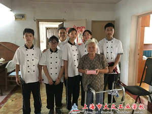 鲜肉月饼做好后,陈凤琴老师也带领着班里的五位同学和社区的朋友们一起前往敬老院看望孤寡老人。她们热情地向老人们问好,为老人们送上新鲜的月饼,并表达了自己真诚的节日祝福,这一举动让老人们感动不已。而几位一同前往的学生也颇有感触。看着一个个白发苍苍的孤寡老人,她们不禁想起了自己的亲人。无论何时,她们都觉得不应该忘记尽孝,要善待身边的每一位老人,做一个孝顺感恩的人。