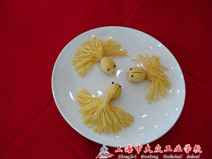 随着嘉定区领导的到来,比赛进入最重要的环节,选手们都在紧张的气氛中热火朝天地操作,有的注重摆盘,有的注重味道,有的注重火候,每份菜肴都力求色、香、味俱全。而我校的参赛选手也在不慌不忙中认真准备着自己的作品。在之前秦秋华老师的多番指导下,她顺利完成了作品,分别有碧绿鸡蛋豆腐、柠汁鱼丝、红烧划水、马蹄莲、月季花,每道菜都颇具特色。能有幸参加此次比赛,她也颇有感触,在采访中她说道:“经过这次比赛让我懂得了,美食不只是需要味,同时也需要形的配合。在雕刻和热菜中我还有许多需要学习的地方,不论比赛的结果如何,我都从这次比赛中获得了许多宝贵的经验,也开阔了我的视野,让我看到自己还有许多可以努力的空间。”