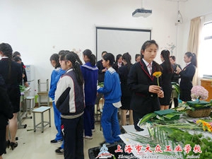 走进烹饪实训中心的展间,首先映入眼帘的便是一张摆满烹饪作品的展台。精致秀丽的面点,完美生动的雕刻,还有色泽鲜艳的热菜、刀工了得的豆腐丝等等,每样作品都各具特色,饱含专业老师们的精湛技艺。参观的学生到来之后,负责烹饪专业实训的秦秋华老师便热情地给学生们介绍起来,秦老师围绕“美食人生,成就梦想”这一主题来展开,他生动幽默又极富感染力的语言给每位参观的学生都留下了深刻印象。值得一提的是,在第一次的学生参观活动中,文秘专业的肖剑虹老师也为大家展示了插花的课程艺术,这也引得了不少女同学的青睐围观。