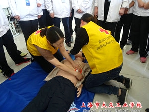 2017年5月11日下午,经济管理系学前教育专业161101班级在5教406进行了“现场初级急救”知识讲座与实操演练活动。本次活动邀请到嘉定区中心医院社工部的杨老师,急诊科的王老师、刘老师,麻醉科的唐老师来为同学们做现场示范与指导,其中王老师、刘老师、唐老师同时也是区红十字会的急救培训教师。