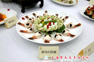 在经过一番紧张而又热火朝天的烹饪创作之后,各位大厨们的美味佳肴便新鲜出炉啦。看,盛在洁白盘子里的锦绣鱼丝如小家碧玉般,清新动人,而大厨们的自创菜肴更是诱惑多多:这些菜肴要么色彩鲜亮,令人极具食欲;要么活泼形象,动感十足;要么高雅别致,像一幅画作;要么命名别致,令人心动,总之每位参赛选手的作品都勾起了评委们的强烈食欲。而我校奋斗队的作品为菊花鱼、蟹斗鱼丝;梦想队的作品为荷塘月色、酿茄斗。经过最终打分,评委们分别评出了最具活力奖、最佳进步奖、最佳推广奖、最佳创意奖和最佳烹饪奖。其中我校以巩贺贺为代表的奋斗队获得了“最具活力奖”。