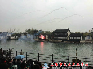 过了桥,我们就开始自由活动。我们到儿童乐园逛了一圈,也去坐了船,但最为精彩的是11点钟的戏剧,整个表演过程可以用“惊心动魄”四个字来形容!我们从未看过这么真实的表演,它的声音效果非常好,在发射子弹的时候,“砰”的一声会让我们不禁颤抖一下身子,然后火势慢慢变大,烟雾缭绕,在看台上的同学都赞不绝口,连连叫好。直到表演结束大家都还沉浸在那个“战火纷飞”的年代,这也让我们深深体会到了抗日战争的艰难与革命胜利的伟大!