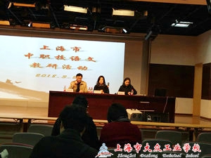 紧接着上海市奉贤中专和上海市商贸旅游学校的语文组组长分别向老师们汇报了本校语文组的建设情况。其中奉贤中专的特色是信息化手段运用合理恰当,师生们可通过网络平台进行互动交流与学习,而商贸旅游学校的重点则是展示了自己学校的主题教研活动流程及特色。