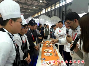 赛前,三位同学首先认真准备好服装,参赛食材与工具,比赛正式开始了,我校三位同学需要完成三个赛品:王天浩同学负责前菜“什锦海鲜沙拉”;居仁滨同学负责主菜“嫩煎油封谷饲牛西冷传统红酒汁”;陈露同学负责甜点“意大利香草奶冻配什锦梅子汁”。比赛要求选手们必须在三个小时内完成赛品。整个比赛过程中,三位选手不慌不忙,互帮互助,专心致志,按照平时练习的方法步骤,有条不紊地完成了作品。作品完成后,同学们需要上台对自己的菜品进行现场介绍,专业老师将进行现场打分。经过一番紧张激烈的评比之后,我校三位同学喜获“两银一铜”的好成绩!