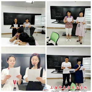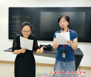 6月13日,上海市大众工业学校组织的校园文化建设项目诵诗班在4教101室继续上课,这也是本学期最后一次课程。参加此次朗诵培训活动的有杨建英、周晓健、彭茂清、杜天一、田凤霞等不同系部的领导与老师。活动依然邀请的是上海大学声音培训师吴笑老师来为大家做指导。本次朗诵篇目选自“从石库门到天安门”主题活动中的经典诗作《爱情的故事》,吴老师精心编排指导,老师们两两合作朗读,声情并茂,在反反复复的训练中老师的朗读能力有所提高!