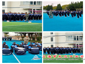 由于疫情原因,这次军训的地点在上海市大众工业学校,训练内容有队列训练、拓展训练、急救包扎等。11日早上8点同学们准时在操场上集合,由孙邓玥和马沁田两位同学主持2020级军训的开营仪式,由教官带着同学们宣誓,并完成交接仪式,训练就正式开始。首先教官们带领同学们训练了站军姿,稍息动作,跨立以及向左转向右转向后转,和原地踏步走,摆臂,包括敬礼。接下来,由于天气原因,同学们在教官们的带领下在教室里观看PPT,了解什么是国家安全和中印交界冲突事件等。同时,同学们还学习急救包扎的相关知识:教官给同学们讲解出血的方式,怎么拿医用纱布片,怎么用全绵三角绷带和弹性绷带等。