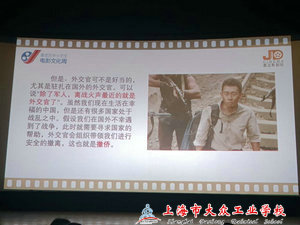 221001班的孙同学说:“这部片子情节很吸引人,最令我印象深刻的是外交官宗大伟,他虽然是一个普通人,但在同胞遭遇不幸的时候,外交官的他冲在了第一线,每个人都要做好自己的本职工作。”