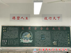 十一国庆和中秋佳节在即,截止9月25日,上海市大众工业学校经济管理系各班级组织学生出版了主题为“校园安全”的第一期精美的黑板报,图文并茂,精心设计,为同学们营造了一个清新、优美、别致的文化氛围,宣传了校园生活中最为关注的安全知识。