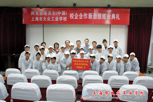 在政府大力发展职业教育精神指引下,本着校企合作共同发展的原则,大众工业学校与阿克苏诺贝尔(中国)公司于2010年,签订了校企合作协议。合作项目主要有:成立“新劲”企业冠名班、设立“新劲助学金”、学生校外实习和就业等等。在校企双方的共同努力下,如今25名学员都顺利地完成了喷漆、调漆的学习任务,并考出了相应的技能证书。