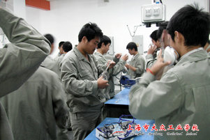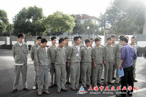 十月初秋的和煦阳光洒满了城市的每一个角落,每日清晨7时50分,上海市大众工业学校六号教学楼前的空地上总会有34名质朴而敦厚的学生身穿灰绿色的工作服,整整齐齐地排列成四路纵队。这34名学生全部来自汽修教学部10级的各个班级,他们从自己原先的班级中分离出来,共同组建成了这个特殊的班级——汽修1036新劲油漆修补班。