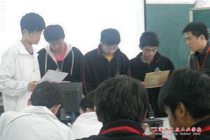 汽修教学部陈旭老师报名参加了本次“聚焦有效课堂”活动中的青年教师汇报课,2011年11月25日上午第三节课,1032班的学生们端坐在汽修实训中心104的教室里,认真地听着陈旭老师的汇报课。