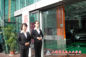 仪容仪表整顿之后,接下来学习的就是待人接物的礼貌用语以及肢体动作。在礼仪课田老师的指导下,从站姿、坐姿到走姿,全班32名同学分成4组互相练习,相互评点。实践课开始的第二天清晨,商务班的同学们就开始轮流在学校的西大门、教学楼底楼以及实训中心底楼大门前练习迎宾的站姿及礼貌用语。一声声“老师早上好”、“欢迎光临”,一次次微倾鞠躬,无一不体现了他们在课程实训中认真学习的效果。