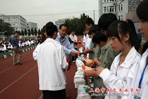 10月12日上午,上海市大众工业学校举行了九月份的文明班级、劳动周优秀先进集体及个人的颁奖仪式和集队进场的展示活动。