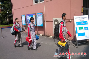 8:15分,距离正式比赛仅剩下15分钟的时间,由于是第一次参加如此重大的赛事,并且首发上场,刘春杉刘迪两人不免有些紧张,领队王顺老师看见眉头紧锁的刘迪连忙鼓励他不要紧张,只要用一颗平常心来对待比赛,将自己的水平正常发挥出来就是一种成功。随后,王老师不忘提醒两组同学整理好工具,勇敢地迎接挑战!
