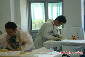 陈晨同学所在的第一组上午进行调漆和做底两道工序,下午则完成刻字的任务;杨健和刘晓文两人则刚好相反,总计比赛时间为5个小时。刘晓文和陈晨2名同学在比赛中发挥出了正常的水平,而杨健同学则因为比赛时自己所用的喷枪因前一组同学使用后出现性能故障而没有很好的完成做底的工序。赛后,他十分沮丧,但班主任朱老师语重心长地告诉他这就是比赛,比赛是具有多变性的,这就要求参赛选手不但要有过硬的技术水平,还要有较高的应变能力,虽然要同时做到这两点很难,但这正是比赛的魅力所在。